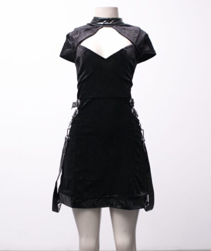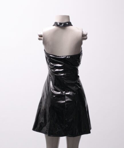 [P] Vestido godê de vinil com abertura e correntes no busto Killstar