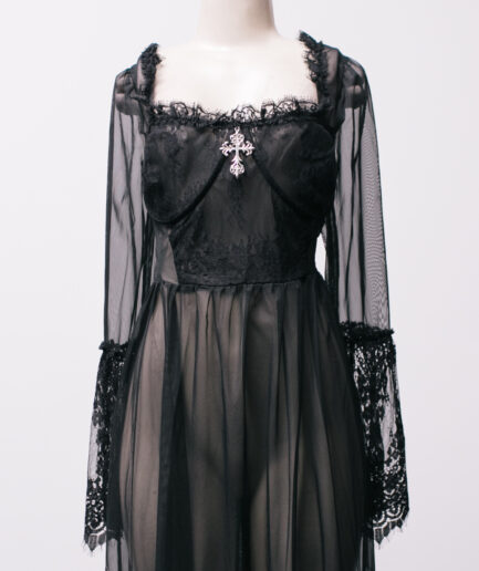 [M/G] Vestido longo de tule com renda e pingente de cruz