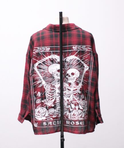 [G/GG] Camisa manga longa xadrez vermelha com estampa de caveiras nas costas
