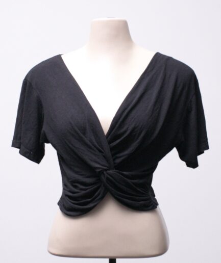 [P/M] Cropped de malha com nó no decote