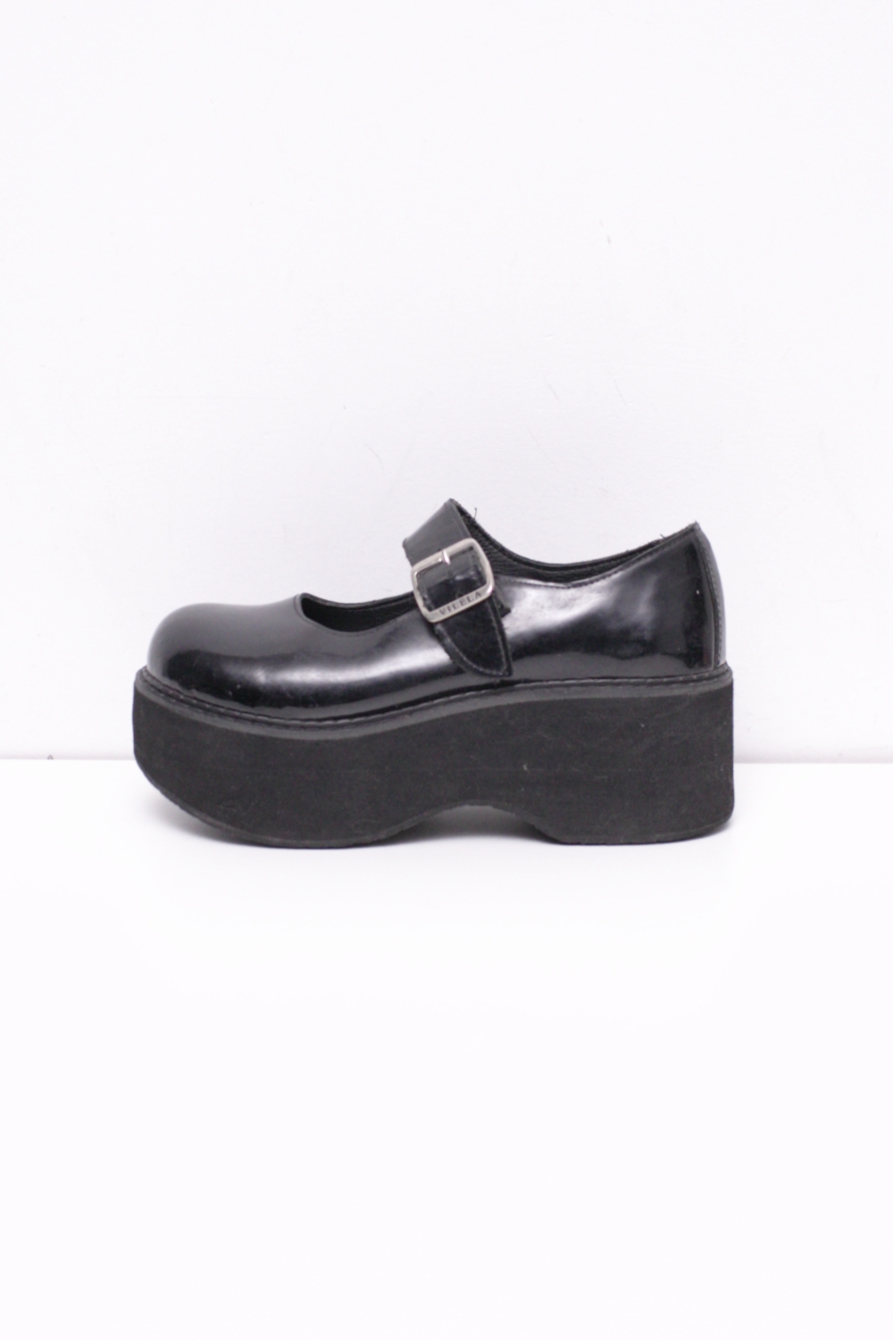 [36] Sapatos boneca plataforma canoa de verniz em couro legítimo Vilela