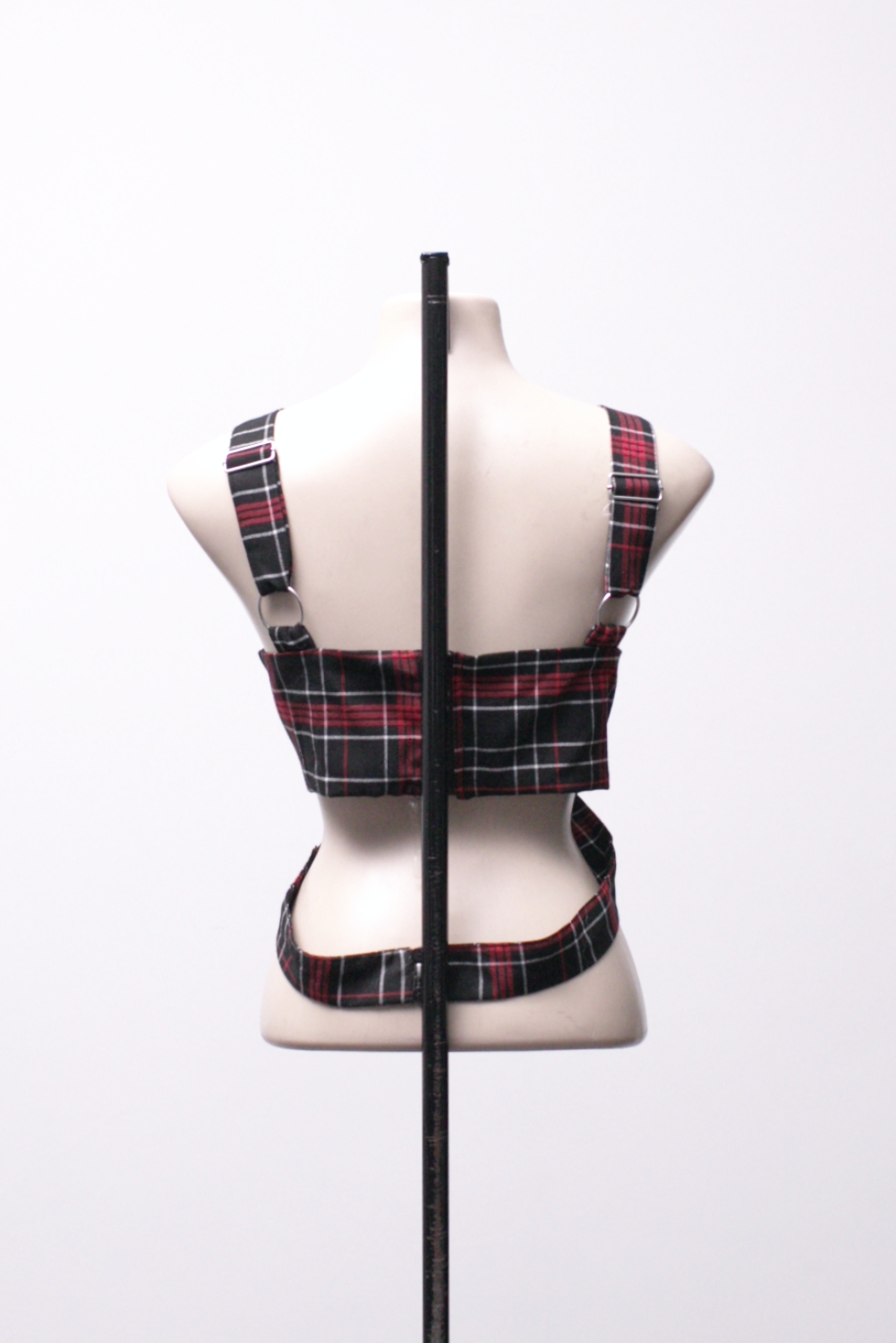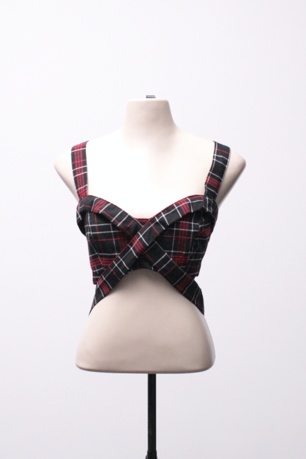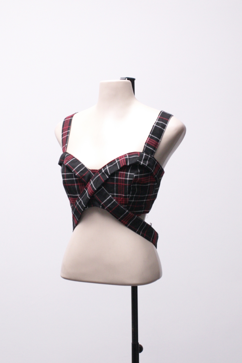 [G] Cropped xadrez vermelho com laço no busto Bluesteel