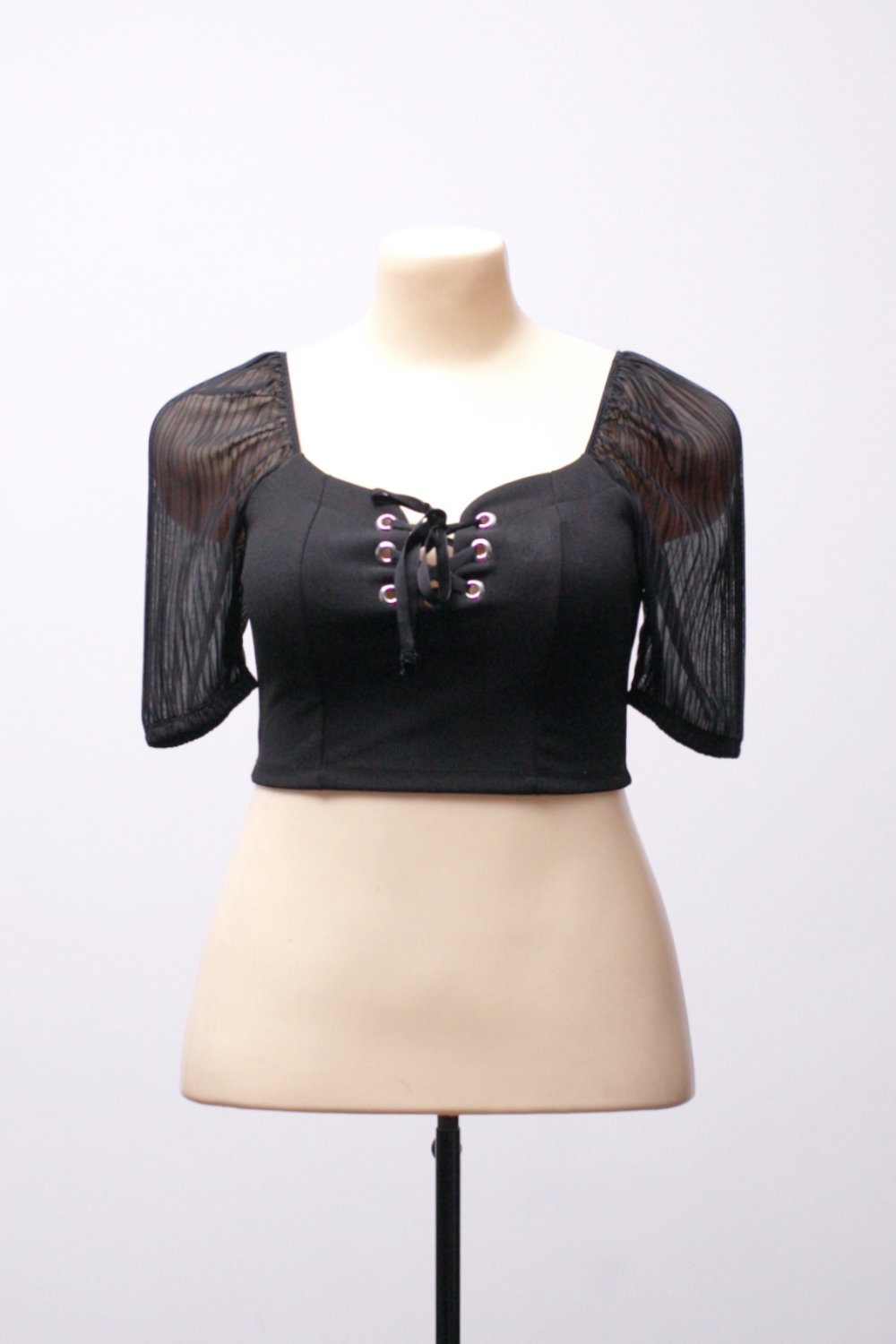 [M/G] Cropped com amarração e manguinhas plissadas Bluesteel