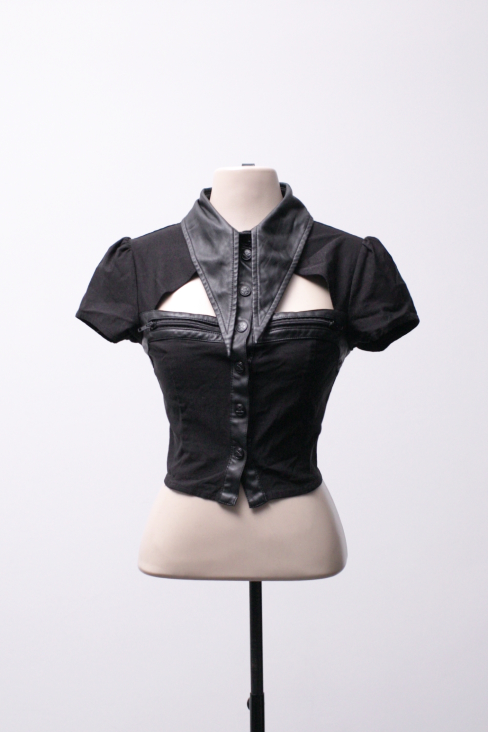 [P] Blusa com gola e detalhes de courino e abertura no busto Killstar