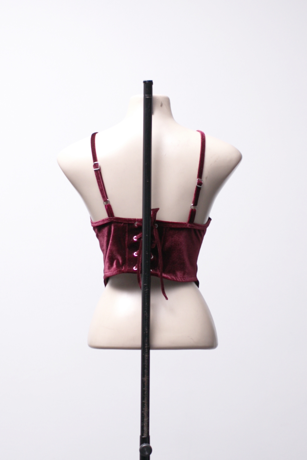 [P/M/G/GG] Cropped com pontas e tiras de veludo vinho