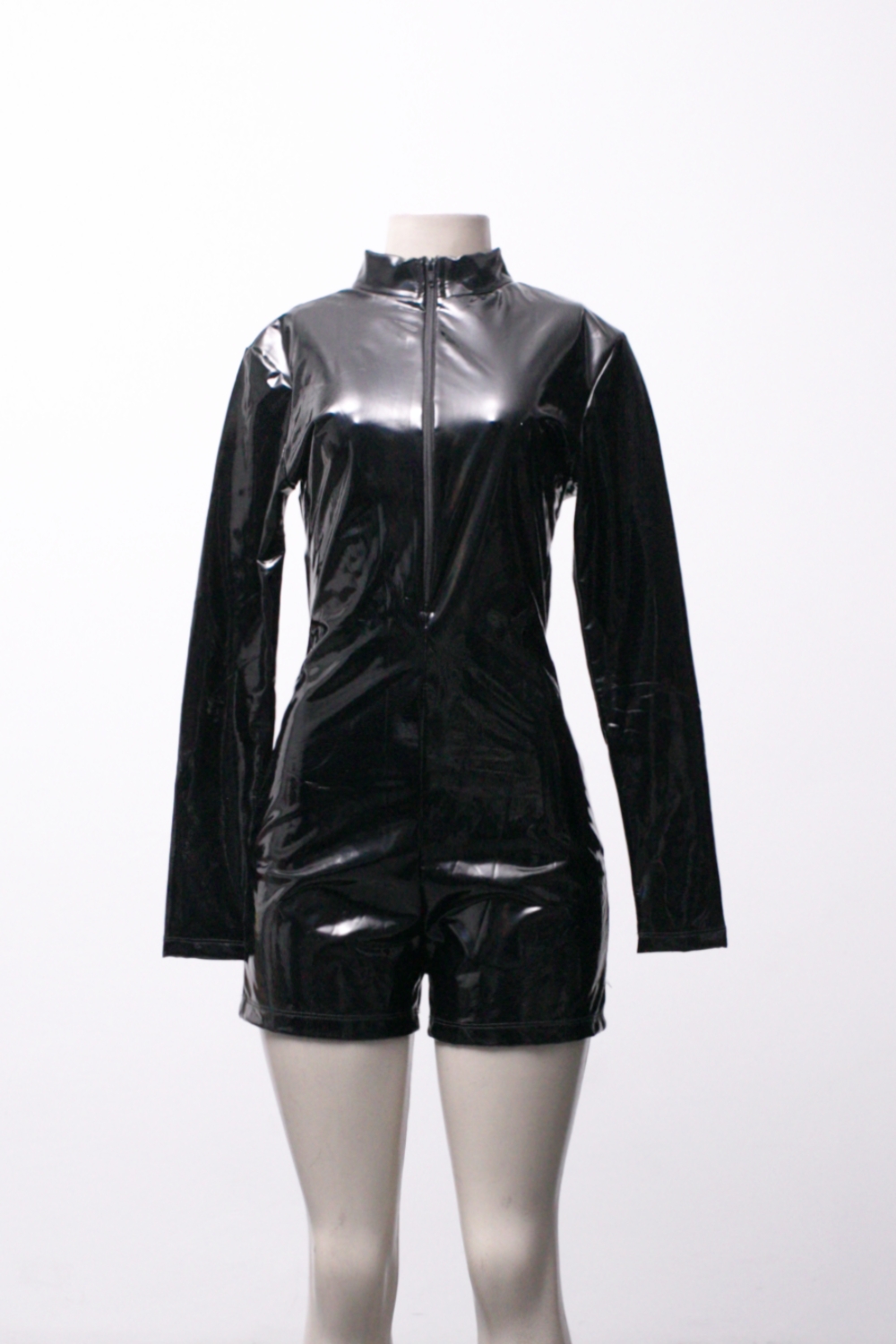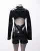 [P] Macaquinho manga longa de vinil holográfico com abertura nas costas
