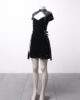 [P] Vestido de veludo estampado com fivelas e suspensórios de vinil Killstar
