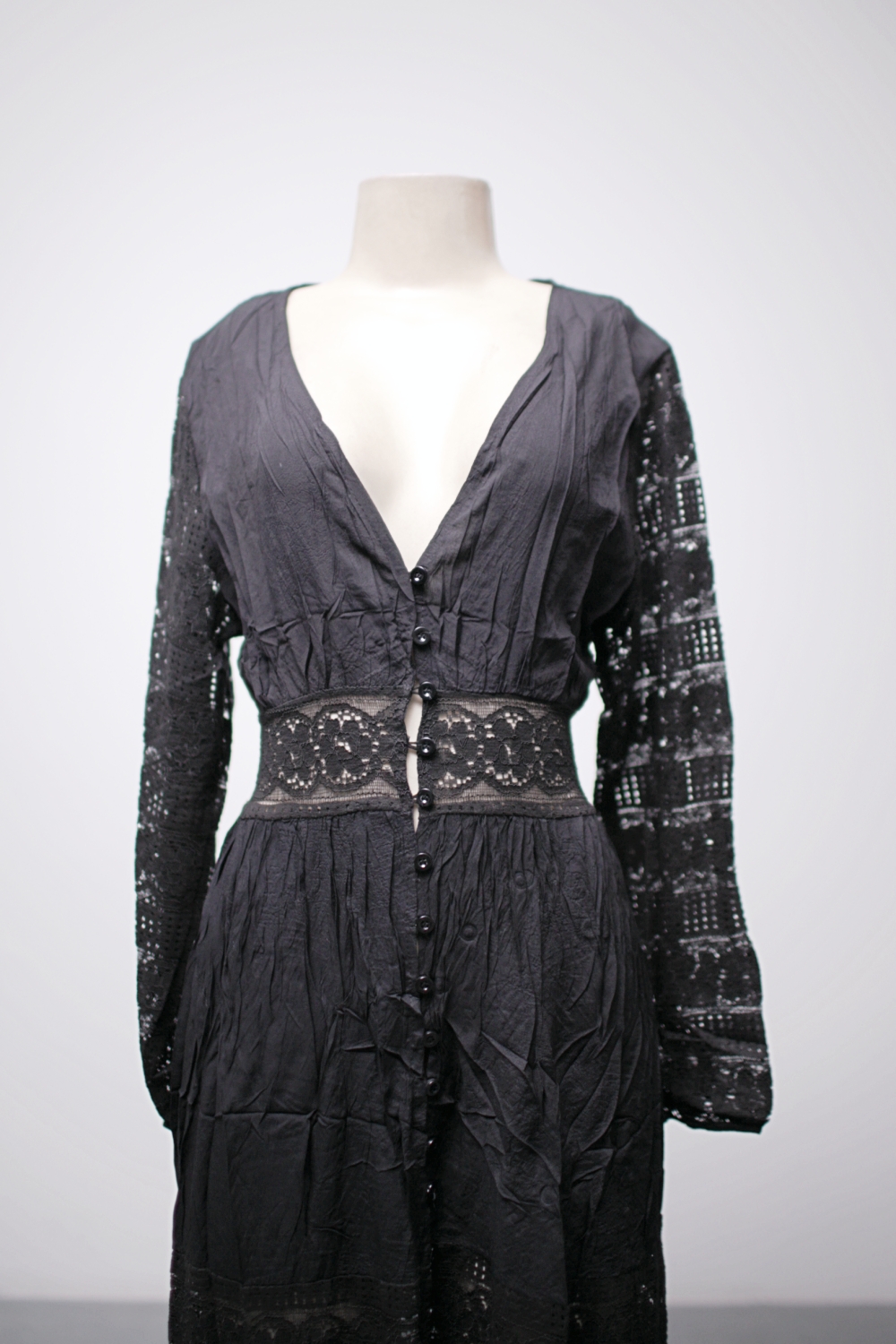 [PP/P] Vestido longo/cardigan de viscose com detalhes e mangas de renda